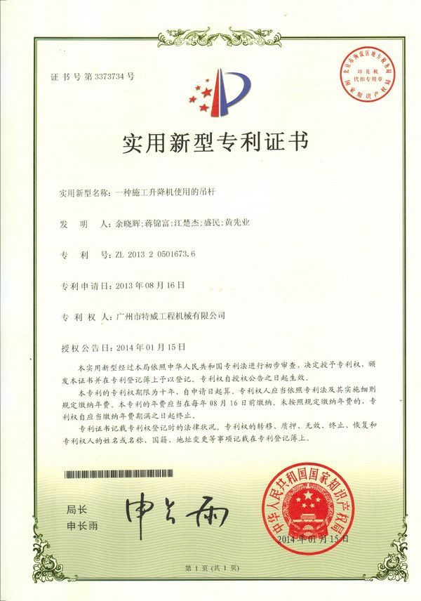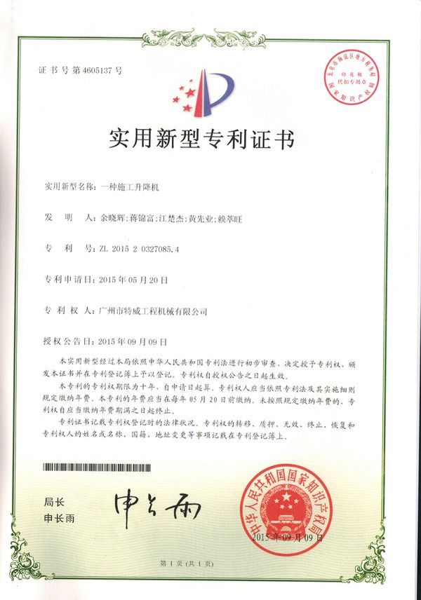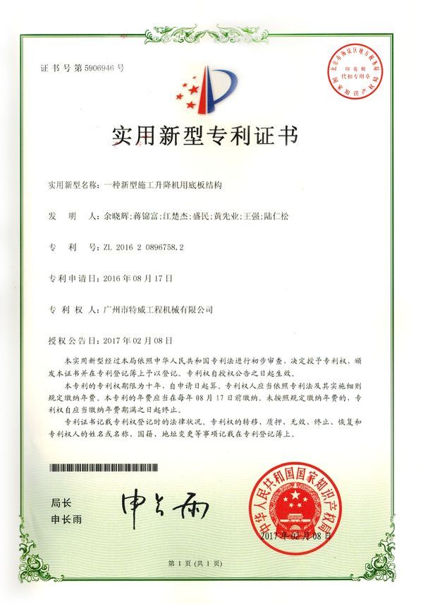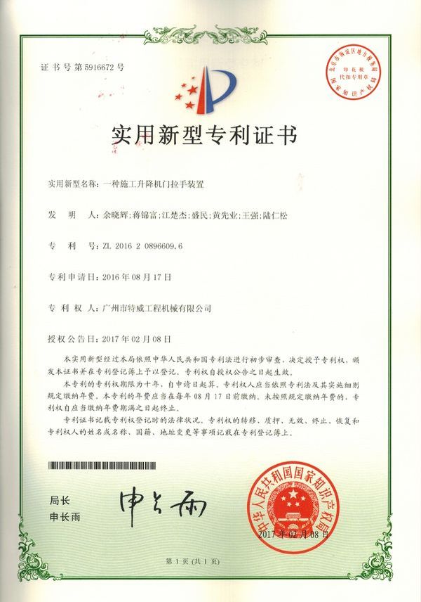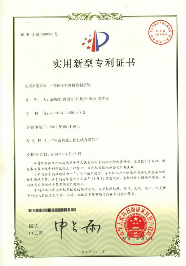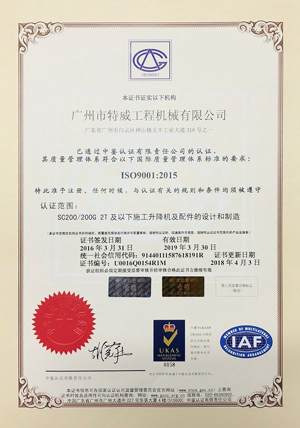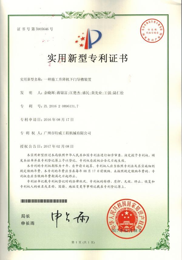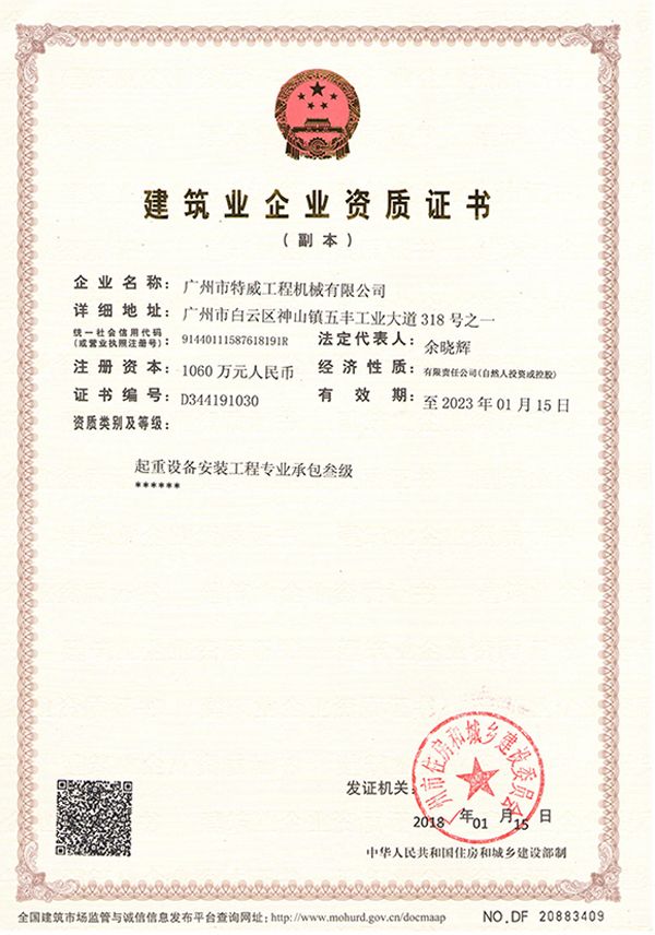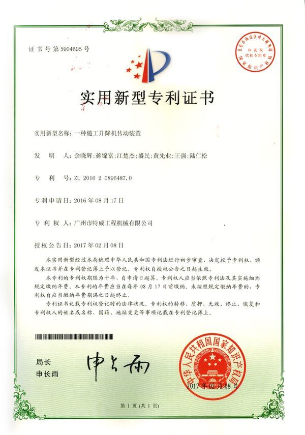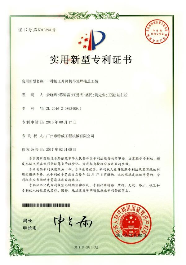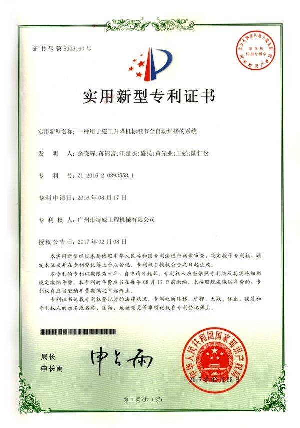 廣州市特威工程機(jī)械有限公司地處廣州市白云區(qū)神山鎮(zhèn),廣清高速神山出口附近,是一家施工升降機(jī)的專業(yè)生產(chǎn)廠家。公司成立于2011年,占地100000多平方米,注冊資金1060萬元,現(xiàn)有員工300余人其中工程技術(shù)人員33人,高級技術(shù)人員52人。